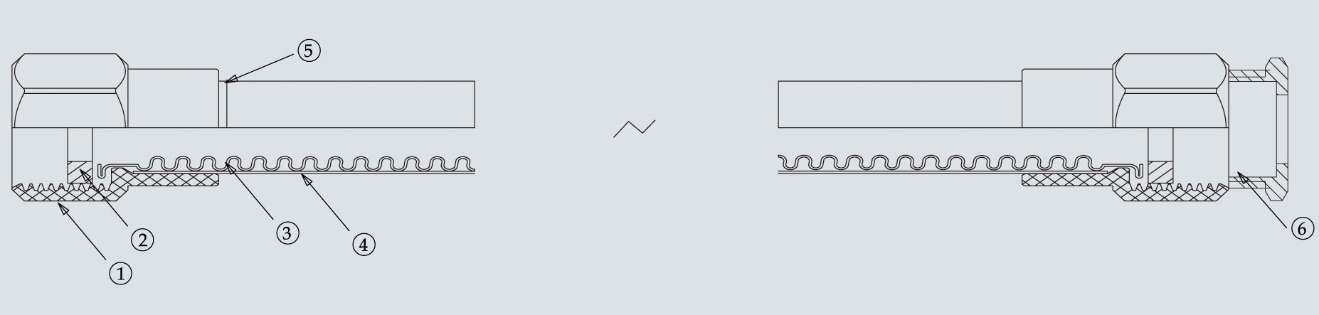 ZLR-06 RLB-ZL-CS-10X300 DN10 16 ①G1/2螺母②平垫③304不锈钢波纹管