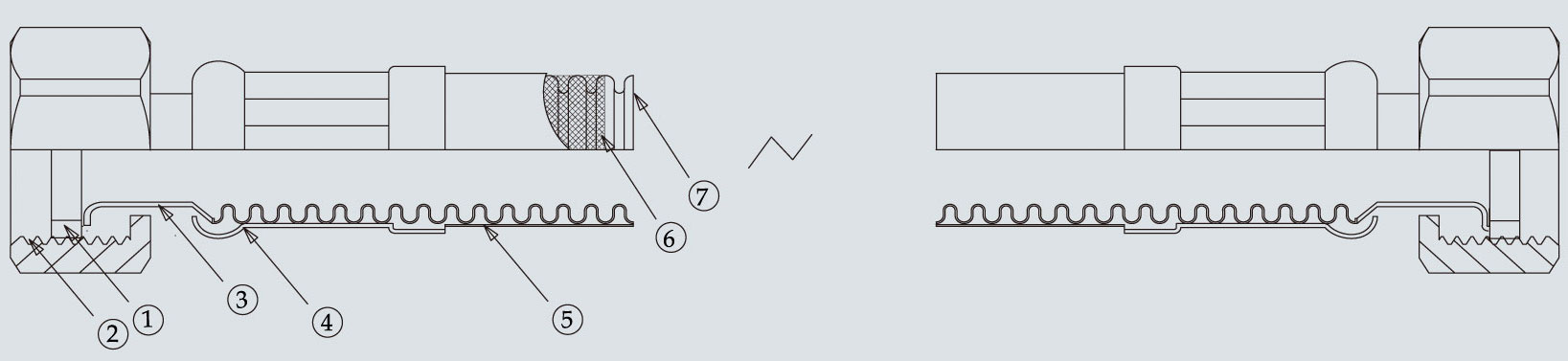 ⑤PVC包覆层⑥不锈钢编织网⑦不锈钢波纹管